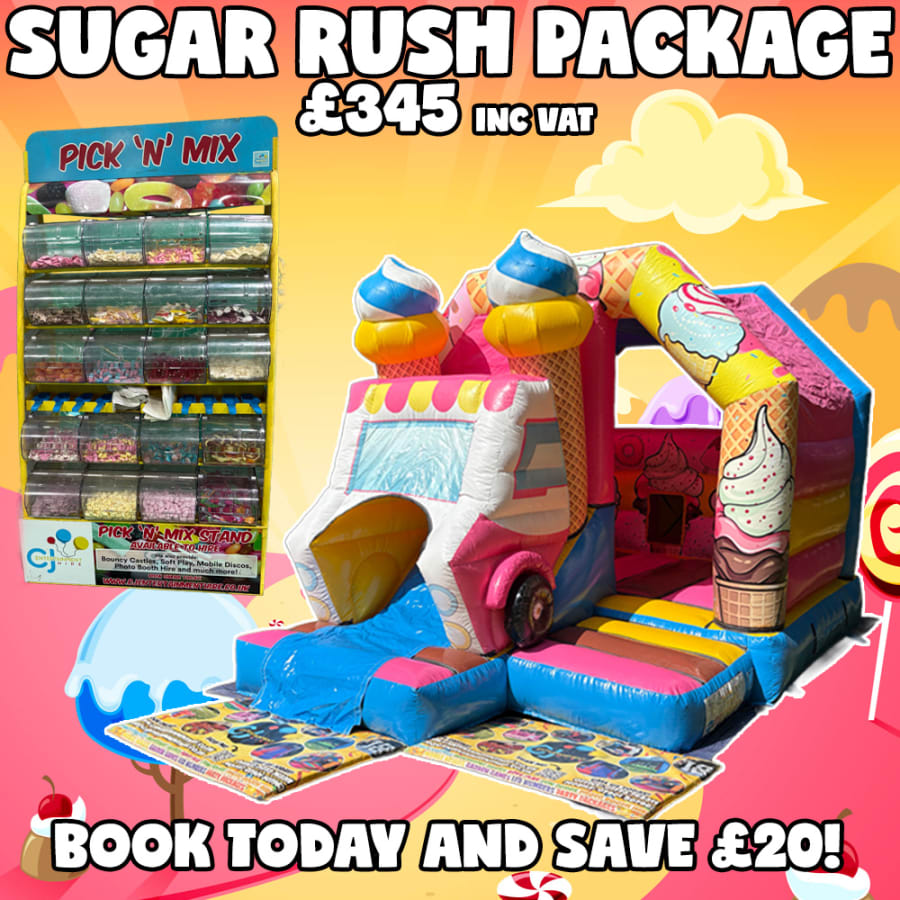 Sweets and bouncy castles, what more could you need for a child's birthday party? Our Sugar Rush Package provides exactly that and well, the name really says it all. If you're looking to keep things sweet for your child's upcoming birthday party, we'd highly recommend this package!