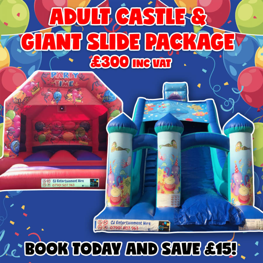 Our Adult Bouncy Castle & Giant Slide Package is perfect for all you big kids! Both inflatables are suitable for children but more importantly adults too! Book our brand new Party Package for 2019 and hire 2 of our larger inflatables we have available.