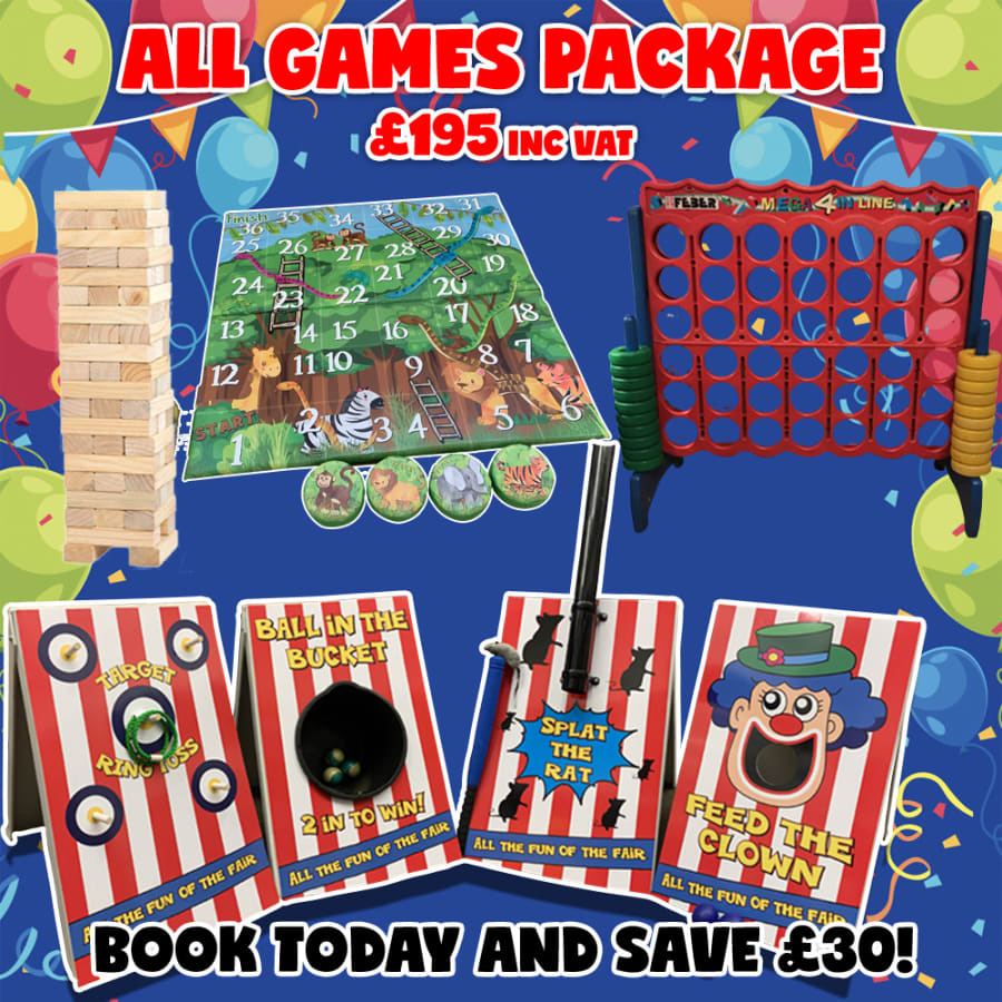 Who doesn't love a good old fashioned game of Snakes and Ladders or Splat the Rat!? We have so many Garden Games to choose from, we thought we'd put them all in one giant package for you to enjoy! This package includes 7 of our very popular garden games. They really are a great hit for all things fun! Whether it's for Weddings, Birthday's, Parties or just to keep the kids busy in the garden. You can also book this package for indoors so the fun can continue all day long incase of bad weather!