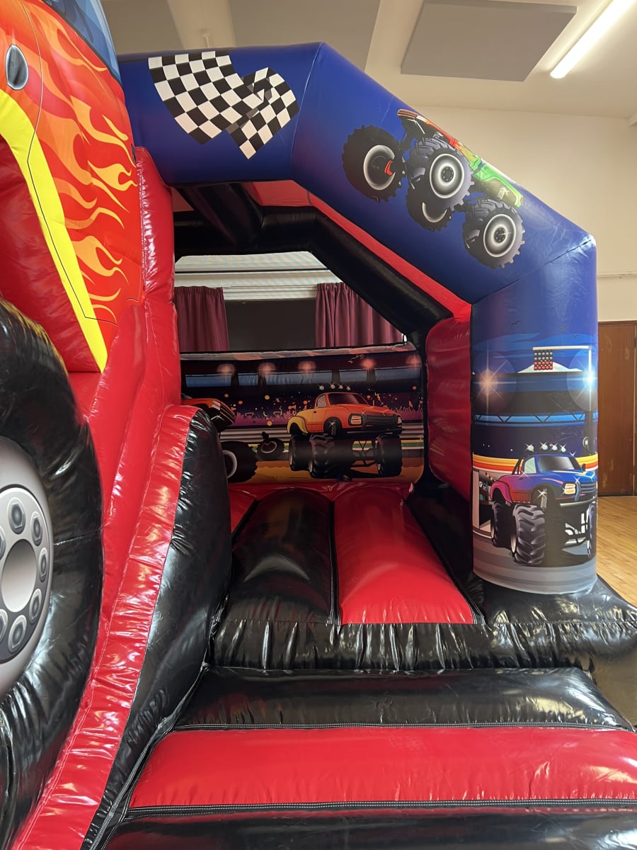 Beep beep! Coming to an arena near you! Our all new Monster Truck Bounce & Slide is ready to rumble. So fasten your seatbelts and honk your horn because there's no stopping this beast when the lights go green!