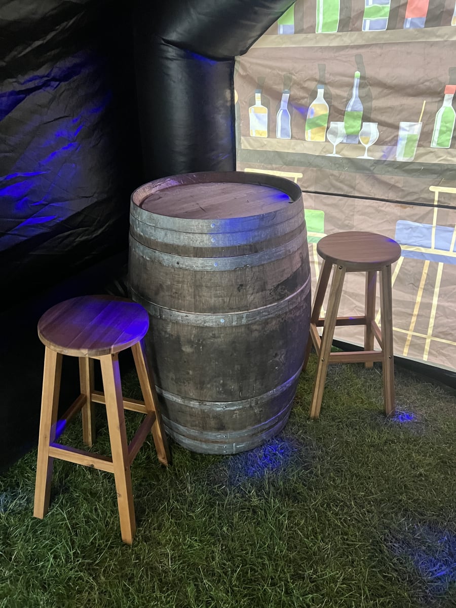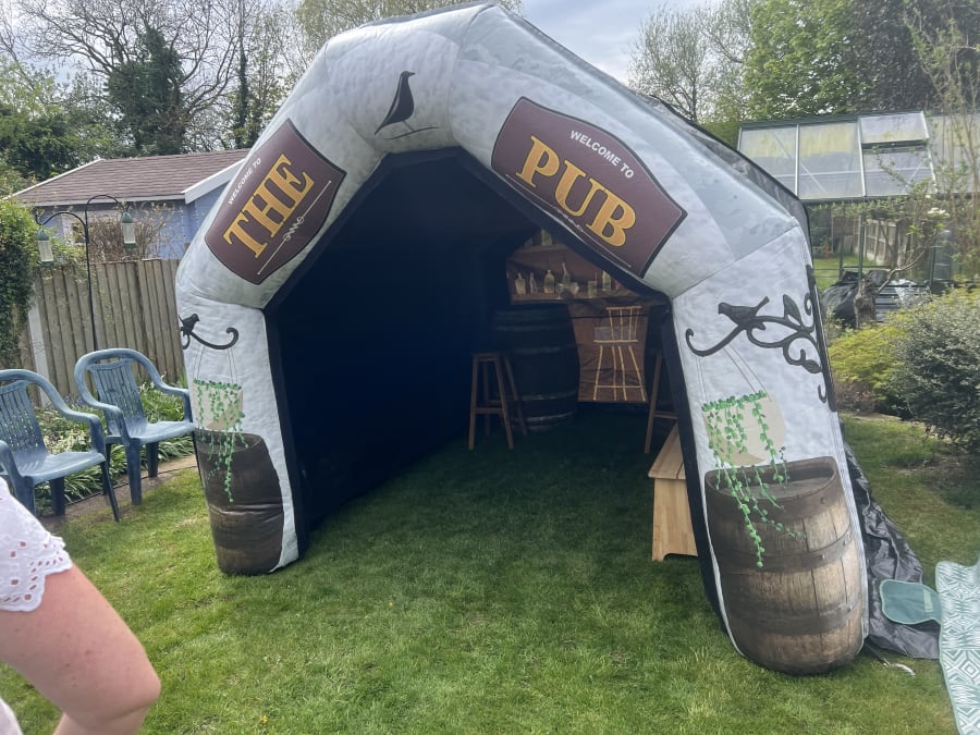 The pub comes equipped with a high-quality speaker system that can blast your favourite tunes, whilst the disco light adds a touch of fun and excitement making it feel like you're in a real pub! Our wooden barrels and bar stools give the pub an authentic feel, making it the ideal backdrop for memorable photos. Whether you're celebrating a special occasion or just having a casual get-together, our Inflatable Pub is sure to impress!