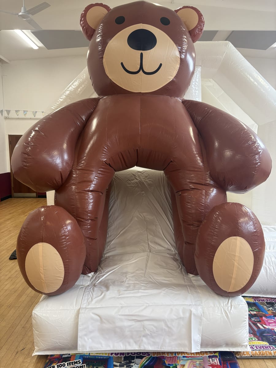 Bring a cuddle-ready centrepiece to your next indoor celebration with our all new Teddy Bear Bounce & Slide! A whimsical, all-white 12ft x 15ft bouncy castle featuring a front-facing slide shaped like an adorable 3D brown teddy bear.