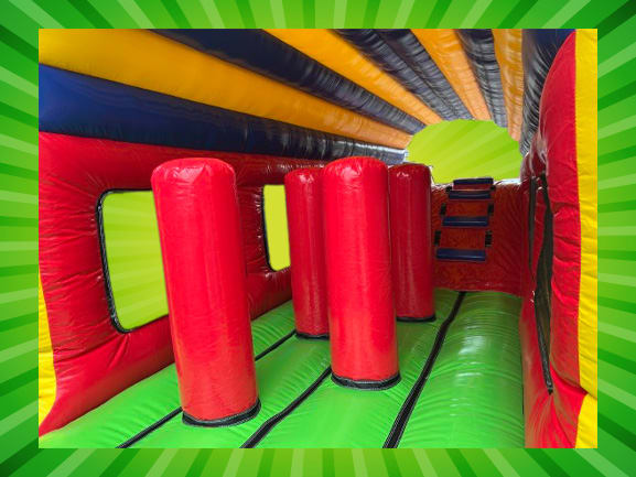 The smallest out of our range of Assault Courses for hire in Nottingham, this 25ft Multicoloured Fun Run is filled with obstacles stopping you from reaching the end. With 4 biff bash posts and a 4.6ft platform slide, it's simply impossible to not have fun! Race your friends and family to see who will reach the finish line first.