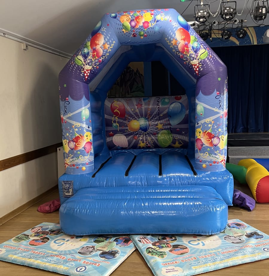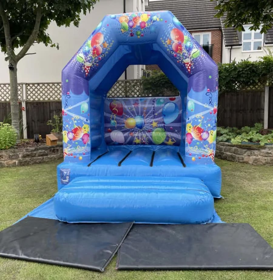 With it’s generic balloon and party artwork, any occasion fits the bill with this stunning inflatable. We get so many enquiries regarding how much room is needed for one of our bouncy castles and this inflatable is ideal for those with smaller spaces. Bouncy castles don’t get much smaller than this! Blue not your colour? Check out our new 8ft x 10ft Pink Balloons Bouncy Castle!