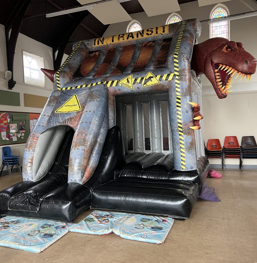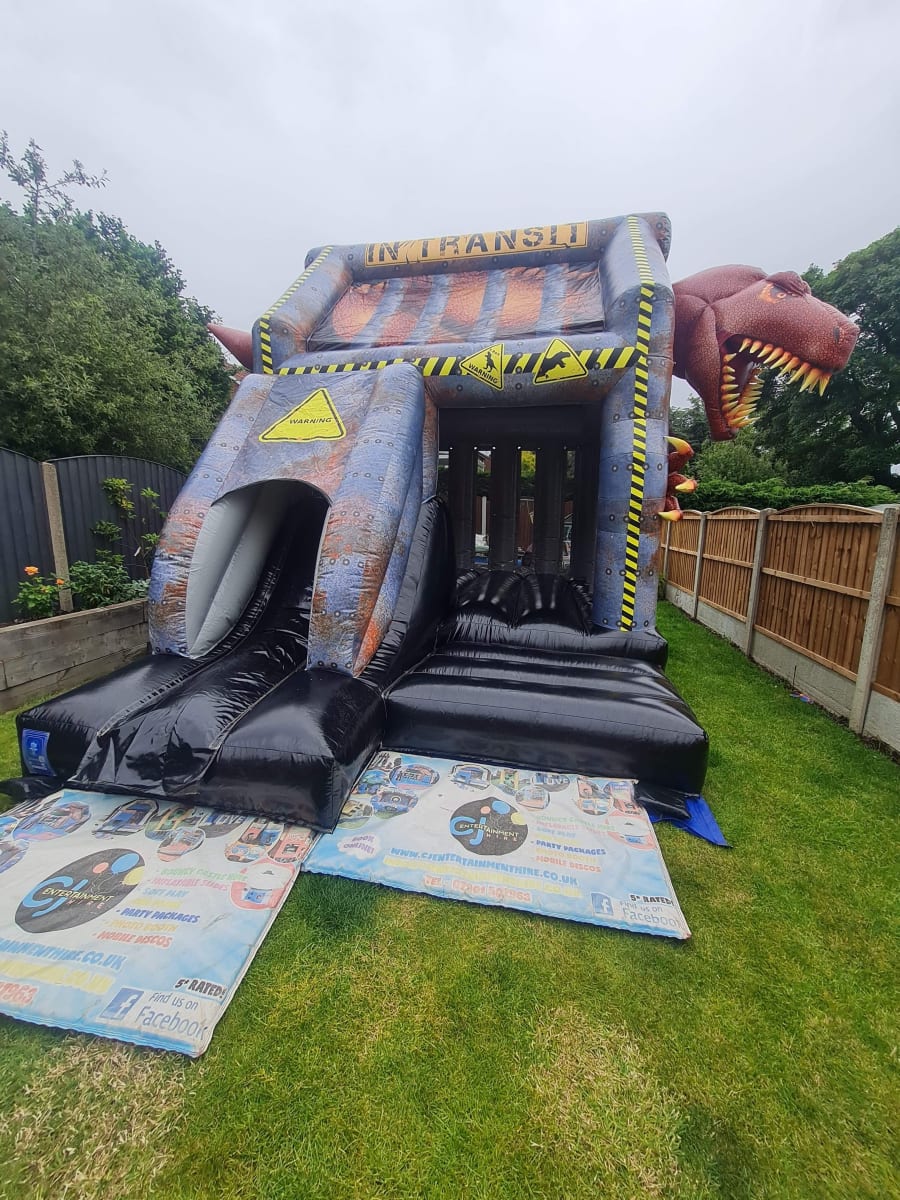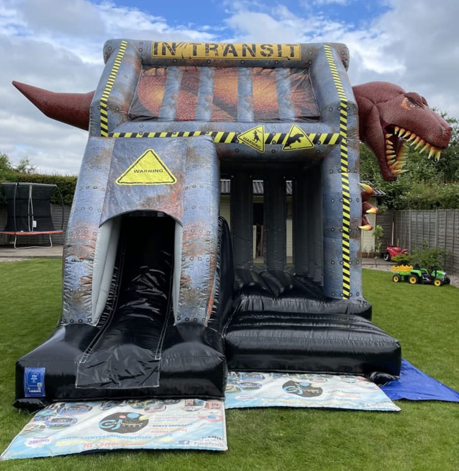 Are you ready to roar? Our all new Dino Cage Bounce & Silde has arrived and after the long journey from Jurassic Park to our unit in Derby, Rex is hungry and he's trying to escape!