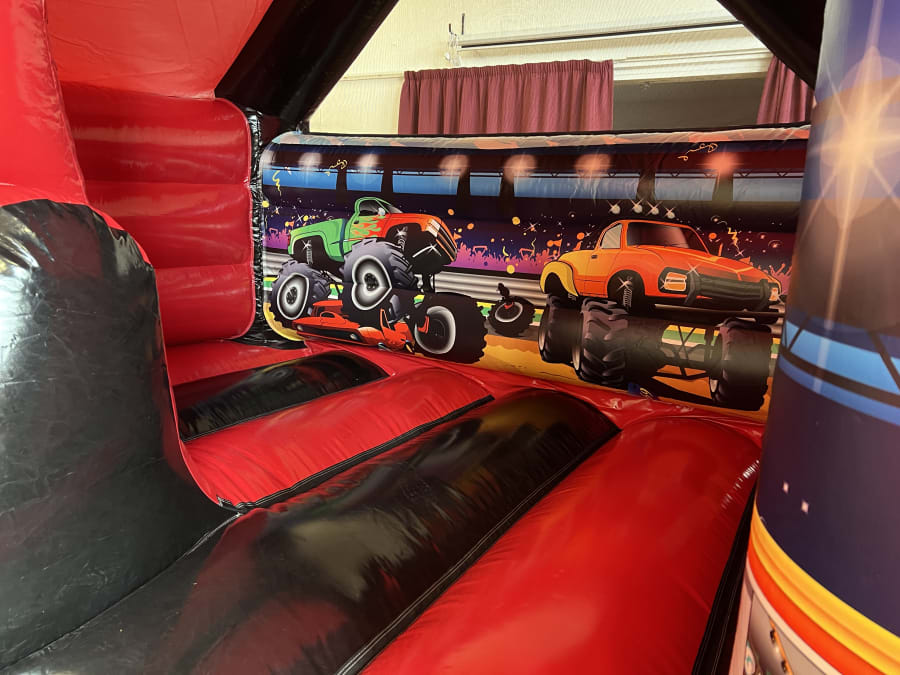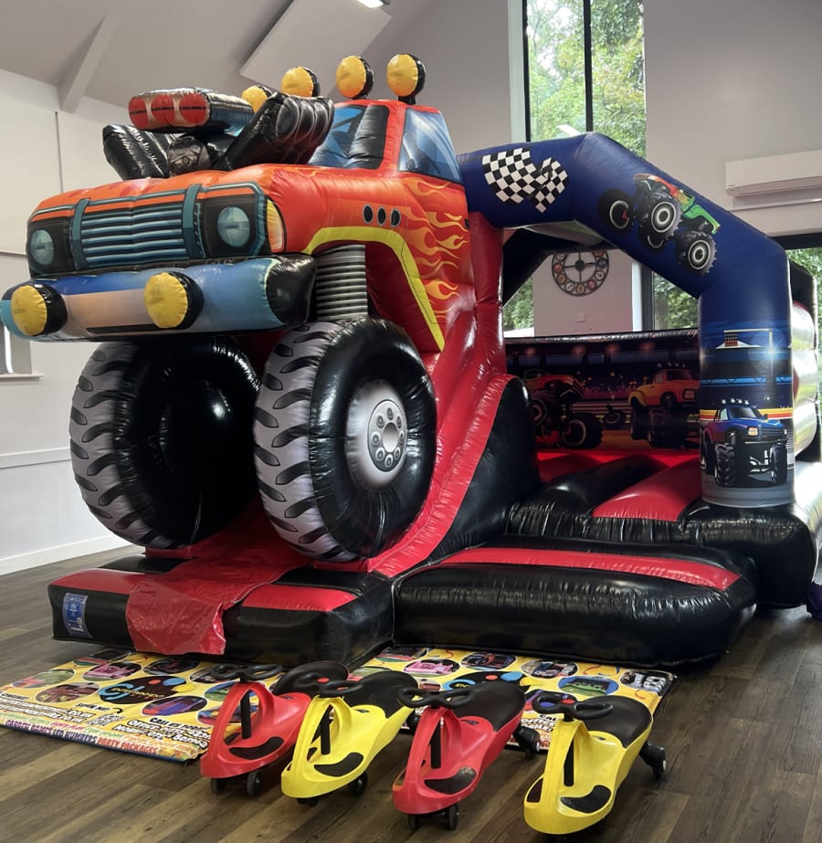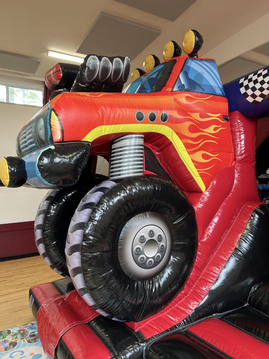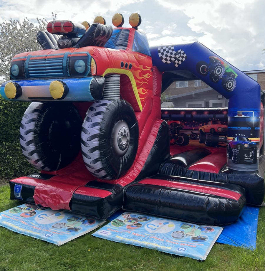 Beep beep! Coming to an arena near you! Our all new Monster Truck Bounce & Slide is ready to rumble. So fasten your seatbelts and honk your horn because there's no stopping this beast when the lights go green!