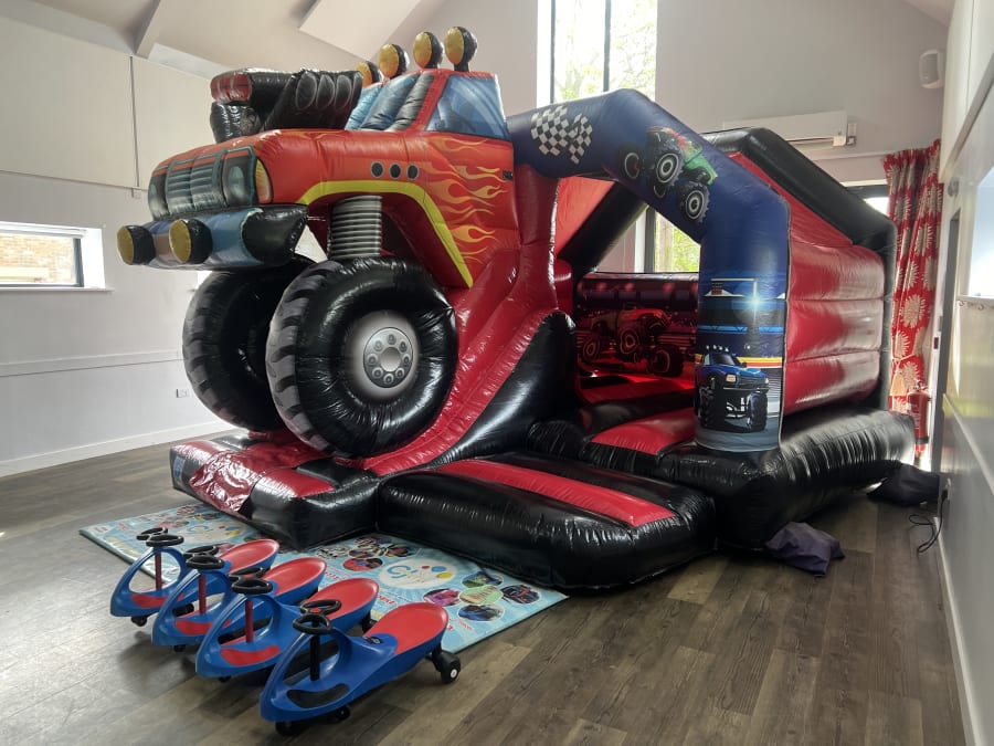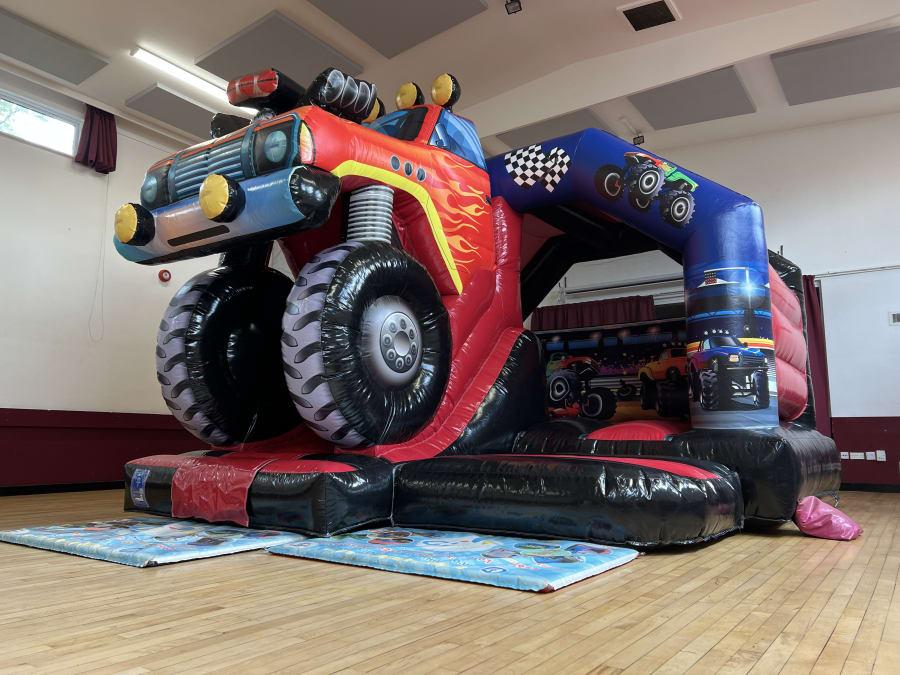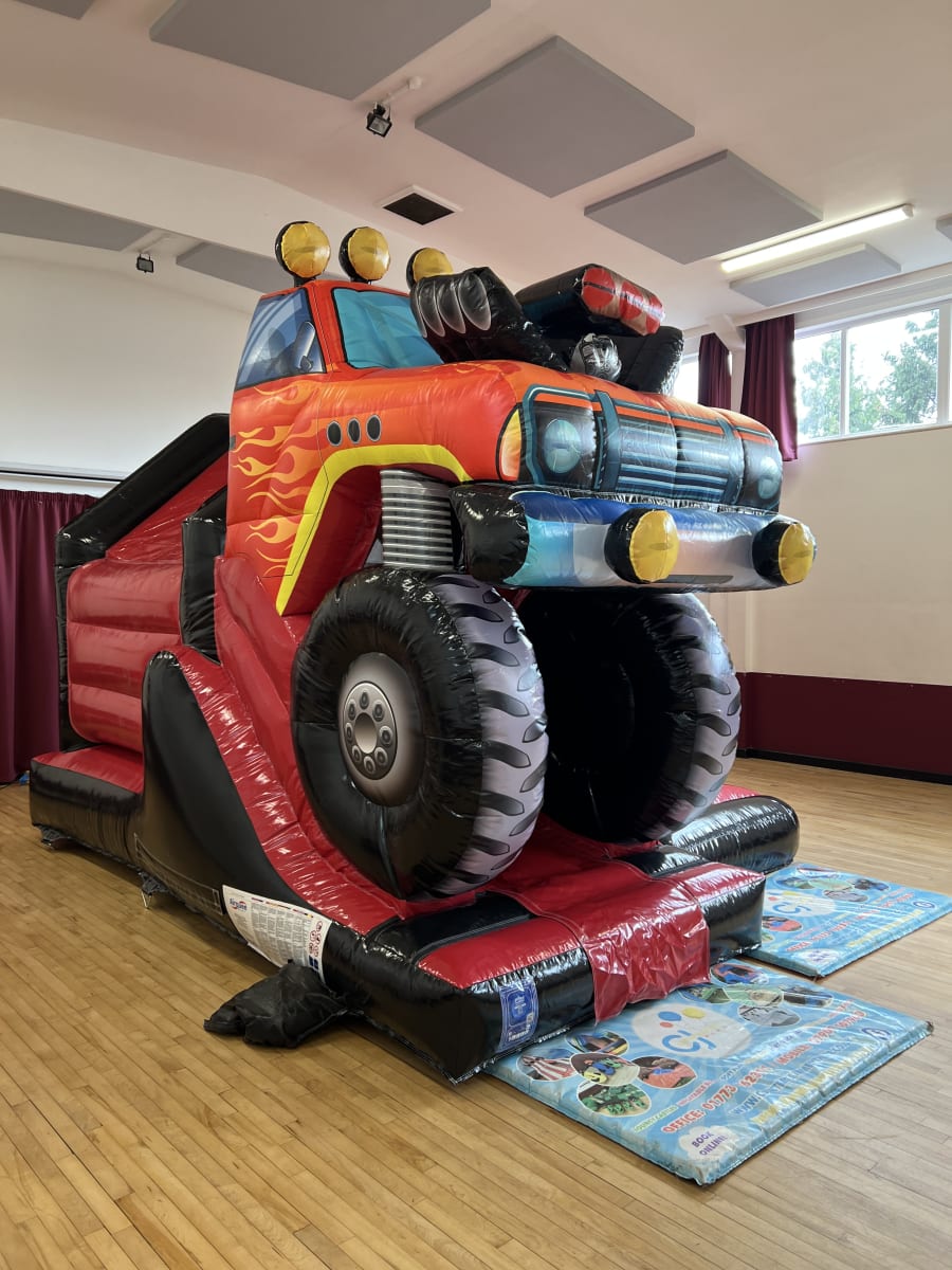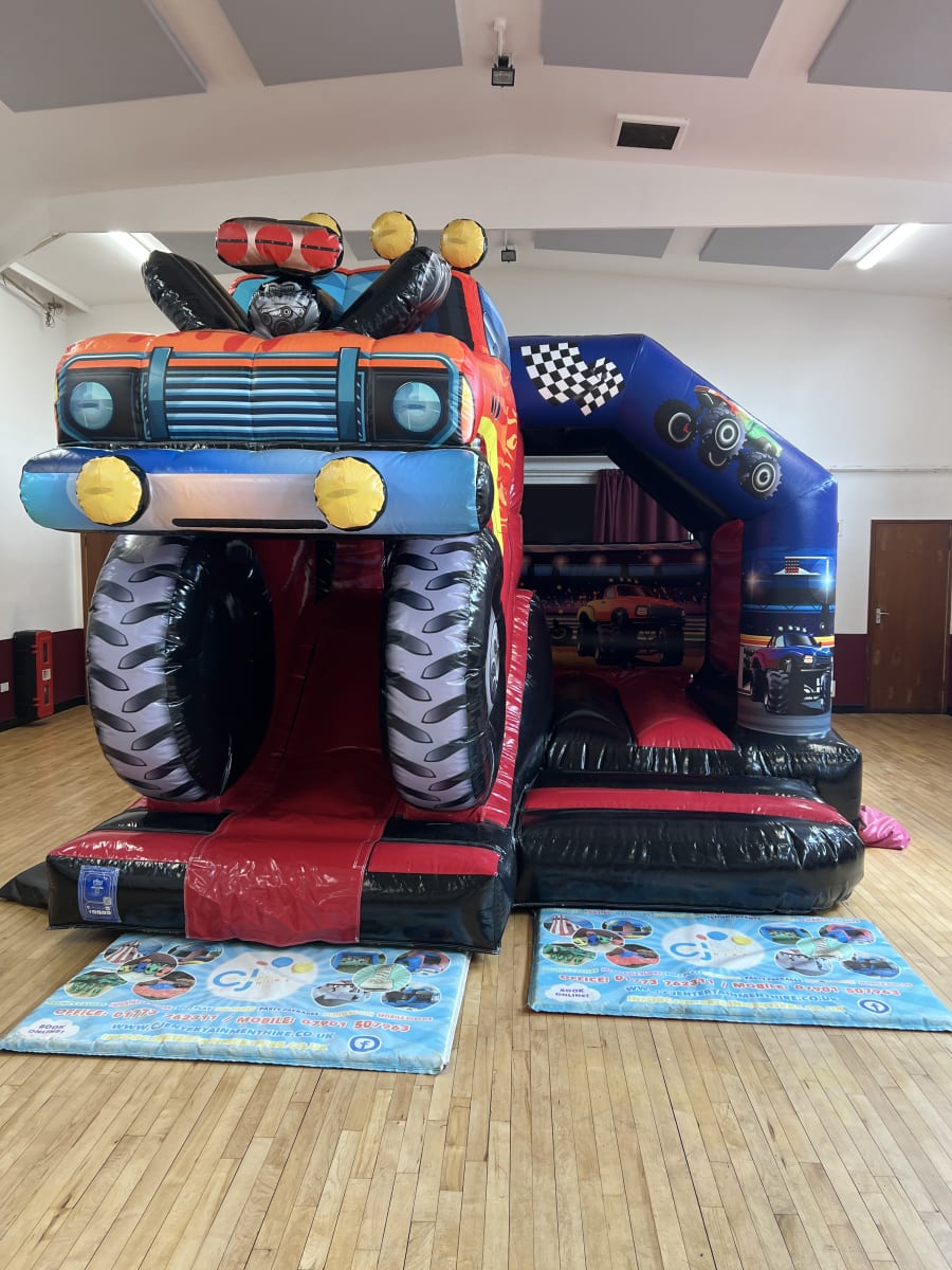 Beep beep! Coming to an arena near you! Our all new Monster Truck Bounce & Slide is ready to rumble. So fasten your seatbelts and honk your horn because there's no stopping this beast when the lights go green!