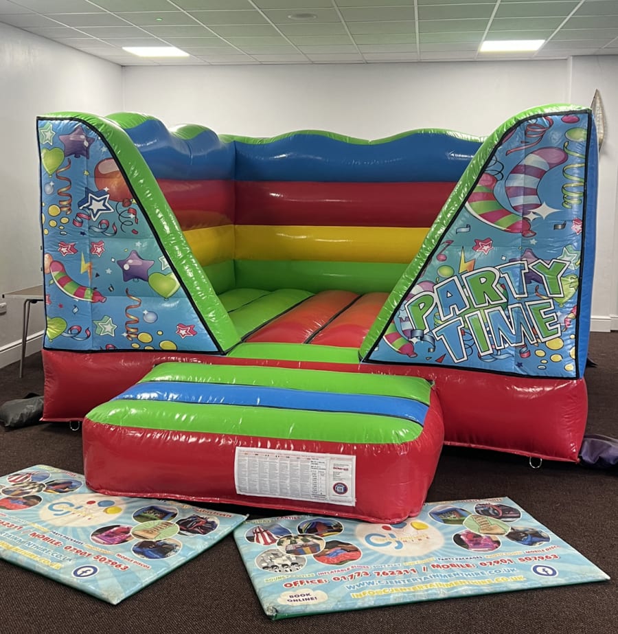Introducing our brand new open-roof Multicoloured Bouncy Castle! This magnificent inflatable stands tall at just 7ft, allowing to fit in most low ceiling venues where jumpers can still bounce and soar with exhilaration. With a vibrant blend of colours, including shades of blue, green, red, and yellow, this multicoloured masterpiece will instantly infuse your event with a joyful and festive atmosphere. It's huge 12ft x 15ft bouncy bed allows multiple jumpers at one time!