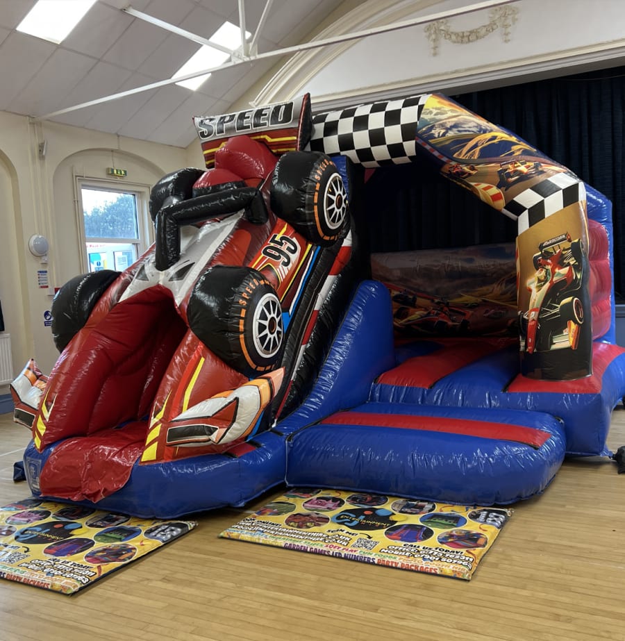 Unleash the thrill with our all new Racing Car Bounce & Slide! Transform your event into a Forumla 1 tournament with our brand new inflatable taking centre stage. Whether you're hosting a birthday party, a community fair, or a corporate event, this is any racing car and F1 fan's dream!