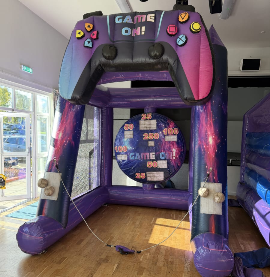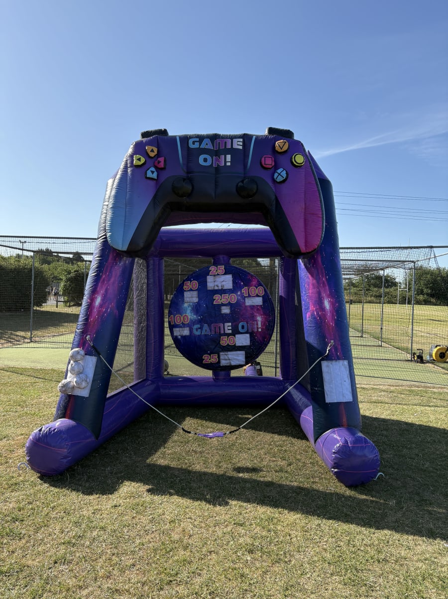 A brand new game for 2025 has arrived and it's one of a kind! Our all new 'Game On' Slingshot Target Game is two games in one. Using the bungee cords, load your ammo into the sling, take aim and fire! The velcro balls will stick to the target board and score you big points! With the detachable bungee cord, you can remove with ease and simply throw your ammo.