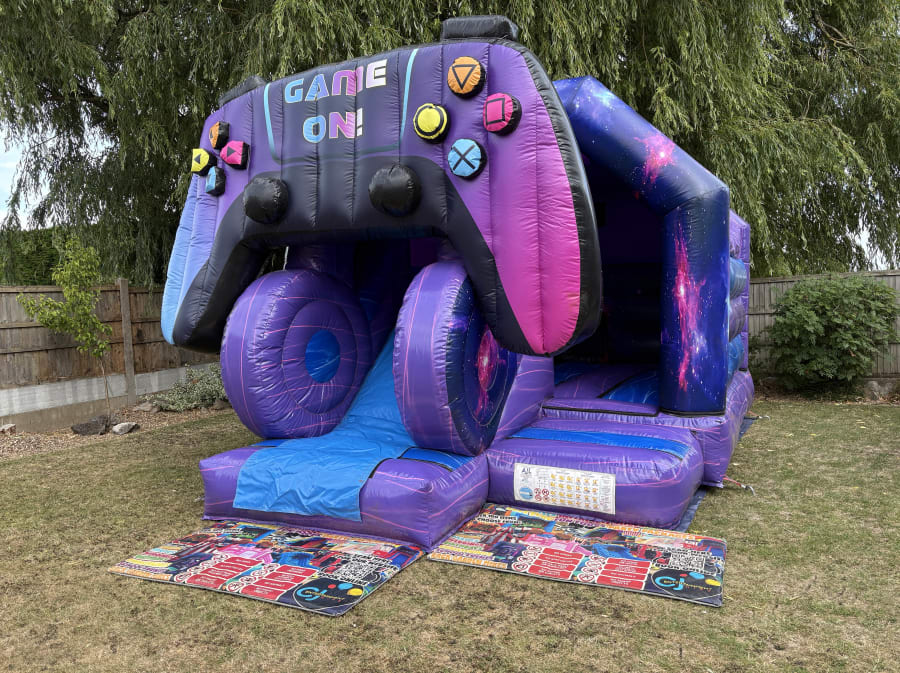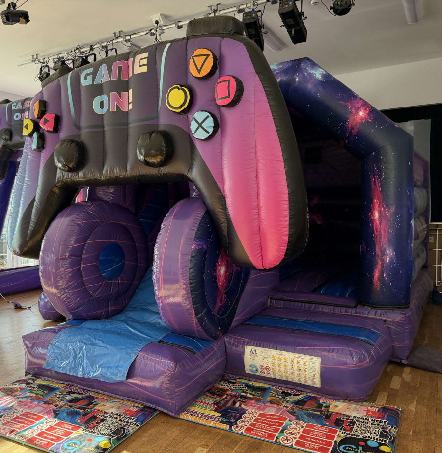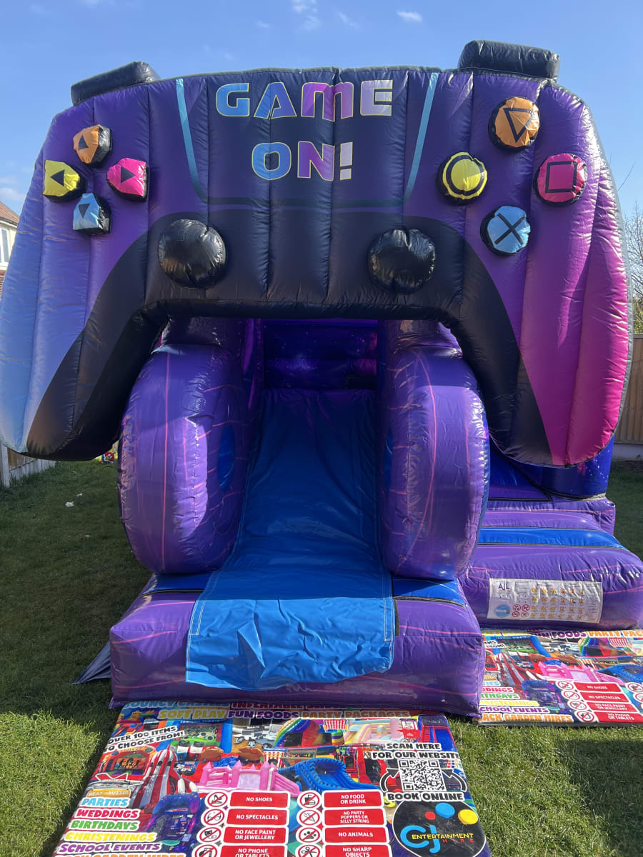 Put yourself in the game with our all new Game On Bounce & Slide, available to hire in Nottingham and the East Midlands today! The centre piece of this unique inflatable is the absolutely huge 3D game controller, any avid gamer will certainly think it looks impressive. The huge 12ft x 15ft bounce area allows multiple users at one time, making it the ideal choice for gaming birthday parties.