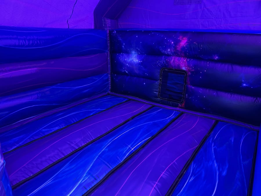 Join the excitement where bouncing and gaming collide! Designed with a striking blue and purple color scheme set against a mesmerising space/galaxy background, this inflatable really is out of this world.