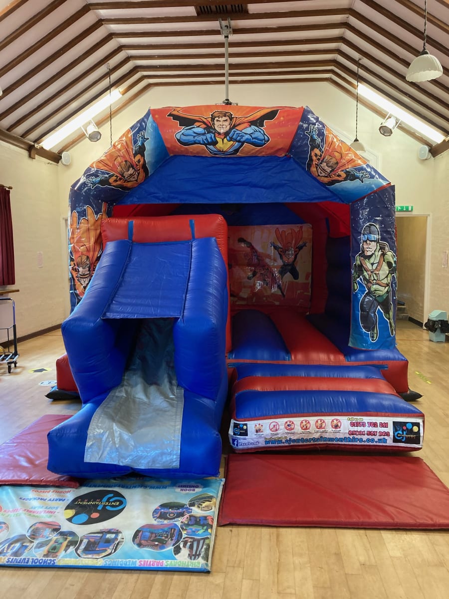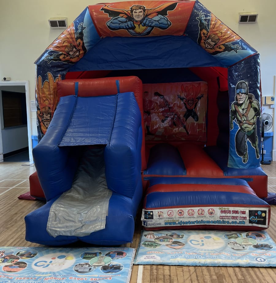 BRAND NEW FOR 2018! Our all new Superhero Bouncy Castle is perfect for all those lighting fast mini superheros. This inflatable is no ordinary castle…it’s out of this world! Our 12ft x 18ft bouncy castle has a whizzing fast slide at the front, adding to that extra bit of fun for your party! If that’s not enough, it can also come with a built in bluetooth speaker and LED disco light for just £10 extra! Our speaker can connect to any device such as an iPod, tablet, in fact anything with bluetooth capabilities. Be one of the first to hire our brand new bouncy castle…we promise you won’t be disappointed!