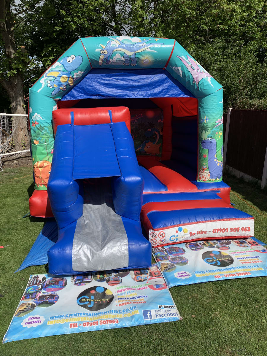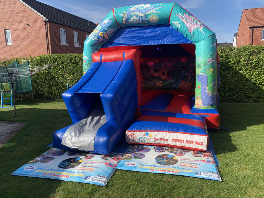Take a step back in time with our all new Dinosaur Bounce & Slide! Perfect for kids that just love dinosaurs...and what child doesn’t? Plenty of fun and guaranteed to keep your little monsters busy for hours! Stomp around like a dinosaur on our all new Bounce & Slide. With a large bounce area and super fast slide at the front, alongside it's dinosaur artwork, this bouncy castle is perfect for any animal themed party. Pretty rawsome right?