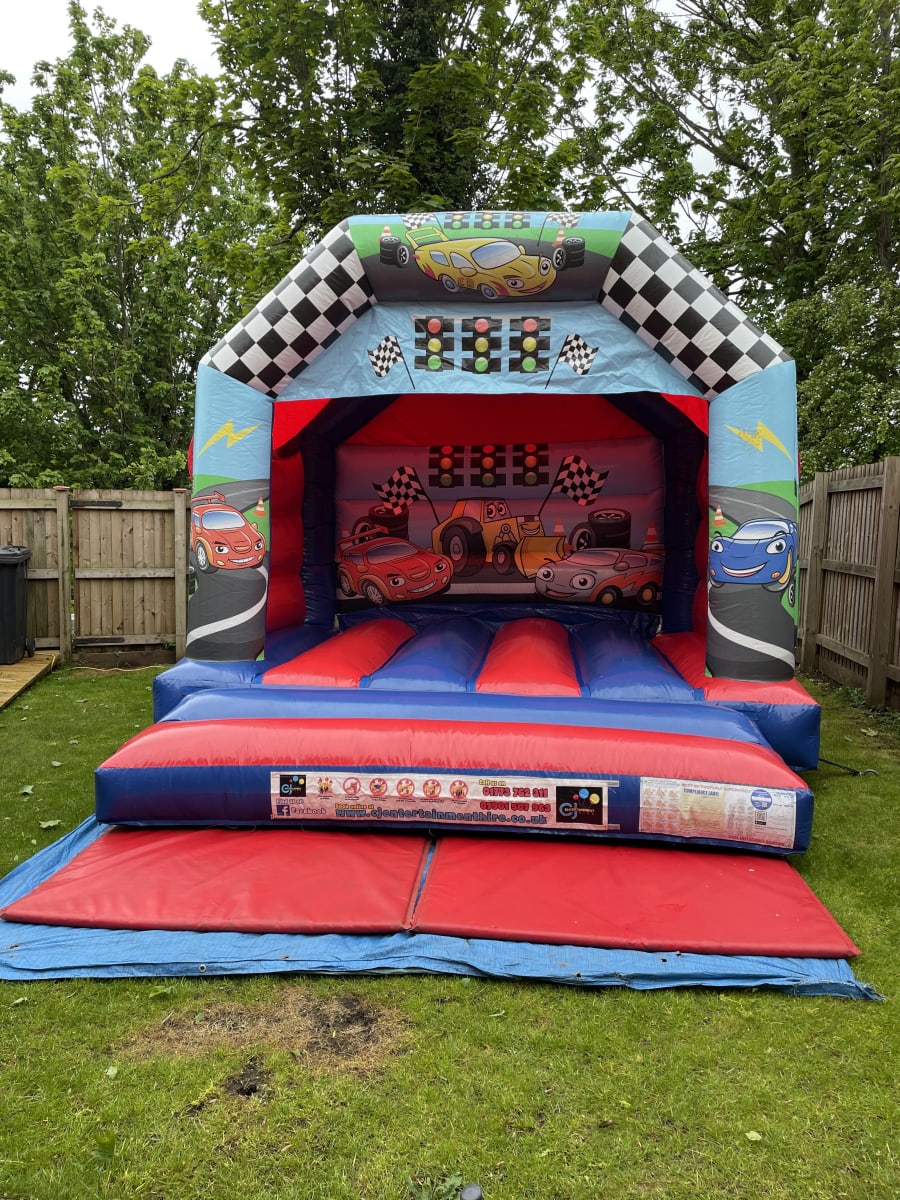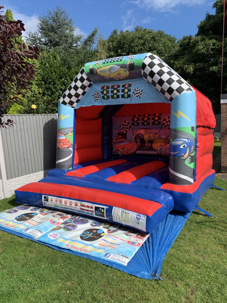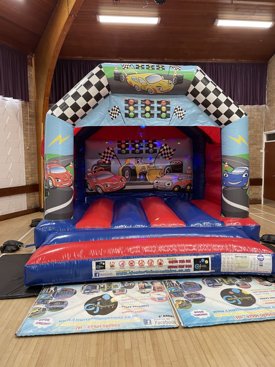 Check out our all new Cars themed Bouncy Castle recently added to our fleet! With it's vibrant blue and red colours, alongside the cartoon themed race cars, this bouncy castle is perfect for any boy or girl that is a true petrol head. Pretend you're in the front seat of a Formula 1 race car and hit the gas!