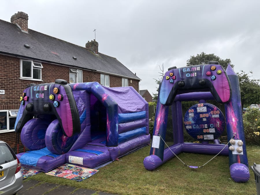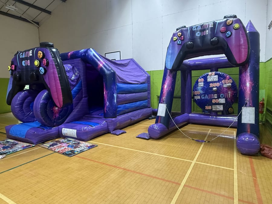 The huge 12ft x 18ft 3D game console bounce & slide is the star of the show. Its ginormous 3D controller will wow any party guest! Immerse yourself in the game with its futuristic colours and space type artwork. This inflatable can also come fitted with an LED disco light and bluetooth speaker for added fun...you've got to impress your guests after all!
