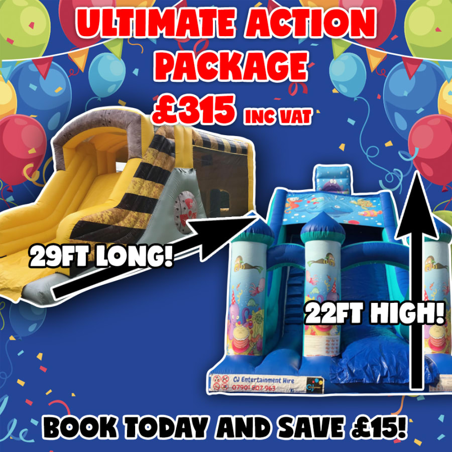 Want to hire the 2 largest inflatables on our fleet for a discounted price? Well of course you do! Introducing our Ultimate Action Package, perfect for those pumped with adrenaline and up for the challenge of taking on our Giant Under the Sea Inflatable Slide and our Battle Zone Fun Run! What's even better...this package is suitable for Adults and Children...fun for all ages.