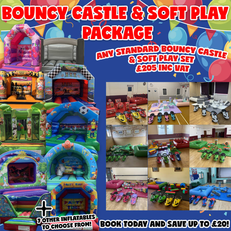 This package includes any standard bouncy castle and any soft play set to suit your occasion! Or why not upgrade to our Bounce & Slide and Soft Play Package?! Absolutely perfect for Birthday Parties, Christenings, Weddings, Pre School Events and just about anything else! With savings of up to £20 to be made, check our availability and book online today!