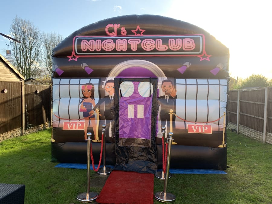 Treat you and your party guests to the real VIP experience! This package includes everything you need to make your night one to remember. The main attraction is our 12ft x 15ft Inflatable Nightclub, with it's 2 LED disco lights and powerful bluetooth speaker, you'll be dancing along to your favourite tunes all through the night. Enter the club on the your very own red carpet with posh red velvet rope barriers on either side.