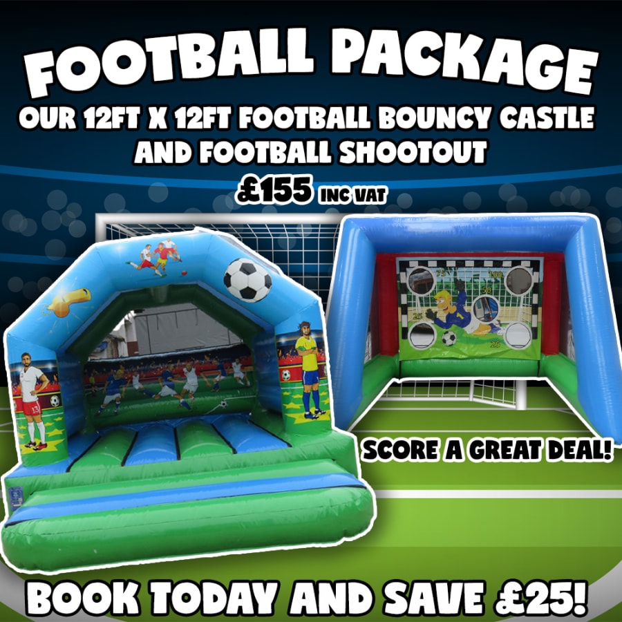 Goooaaaal! We bet you’ll be a (footy) fan of our all new Football Package! Made ready just in time for next years World Cup, this nifty package features our brand new for 2021 12ft x 12ft Football Bouncy Castle and our ever growing popular Football Shootout game!