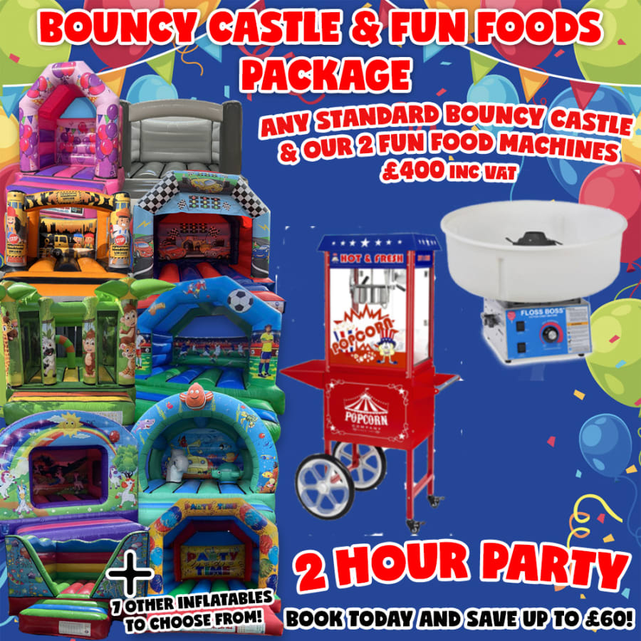 Have you and your guests got a sweet tooth and looking for a bouncy castle to add to your party? Then why not book our Bouncy Castle and Fun Foods Package!