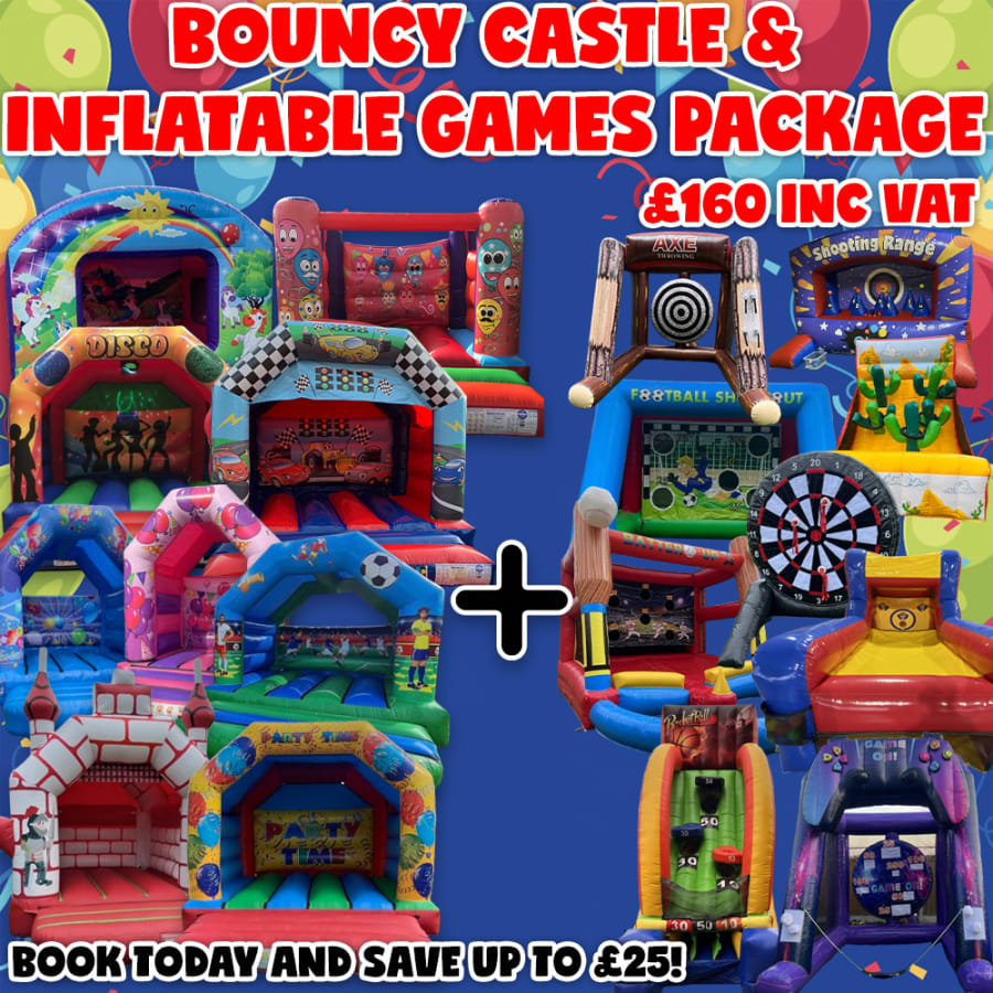 Are you the competitive type? Planning a party and looking for something to suit everyone? Well check our Our Bouncy Castle and Inflatable Games Package available to book right now! Choose from over 17 of our standard bouncy castles, with so many different themes to choose from, whether it's a football party, jungle, circus, ocean, construction or just a plain celebrations bouncy castle, we've got it all!